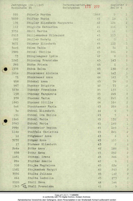 Infolge dieser Rechtslage wird Anna Stögbauer ins Frauengefängnis nach Aichach überstellt.40 Dort verbleibt sie vom Mai 1940 bis zum Februar 1943.