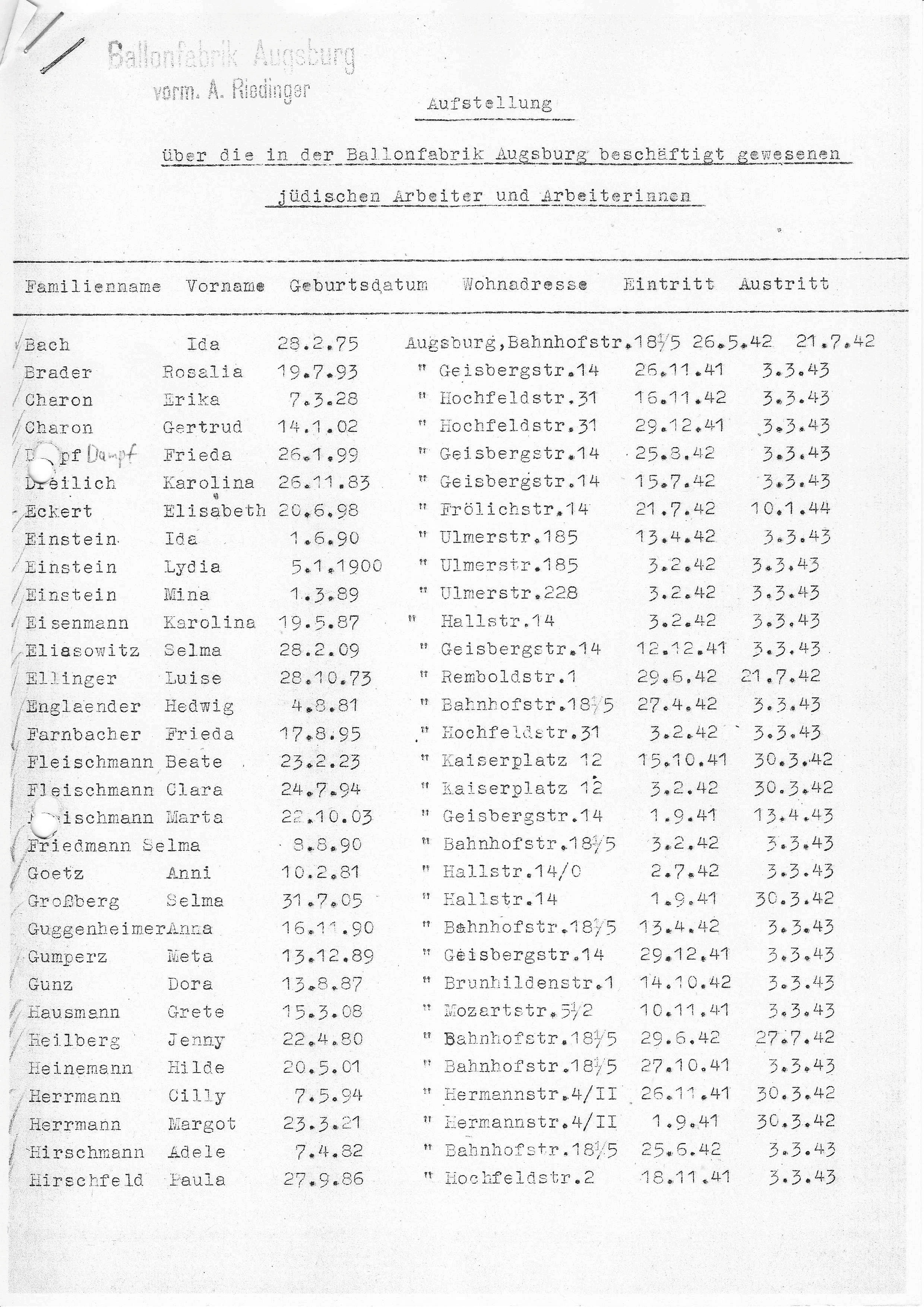 Zwei Wochen später erhielten die 56jährige Cilli und die 20jährige Margot Herrmann die Aufforderung zur Zwangsarbeit in der Ballonfabrik Augsburg.