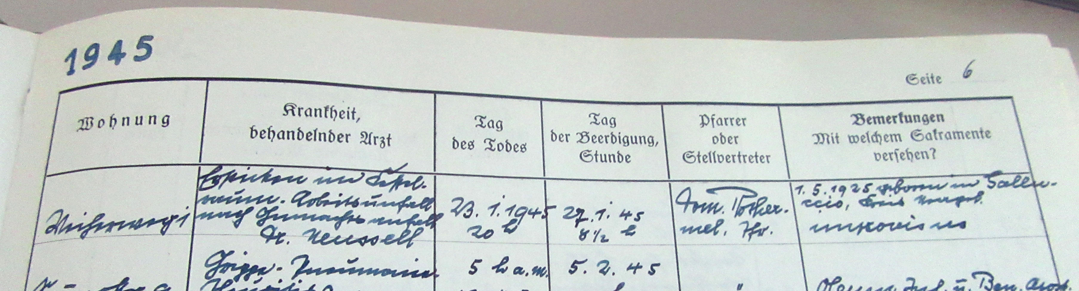 Pfarrer Rothermel beerdigt den Toten in Gersthofen am 27. Januar 1945 morgens um 8 Uhr 30.24 Sein Grab in Gersthofen kennen wir nicht. Gino Rossi ist zum Zeitpunkt seines Todes noch keine 20 Jahre alt.