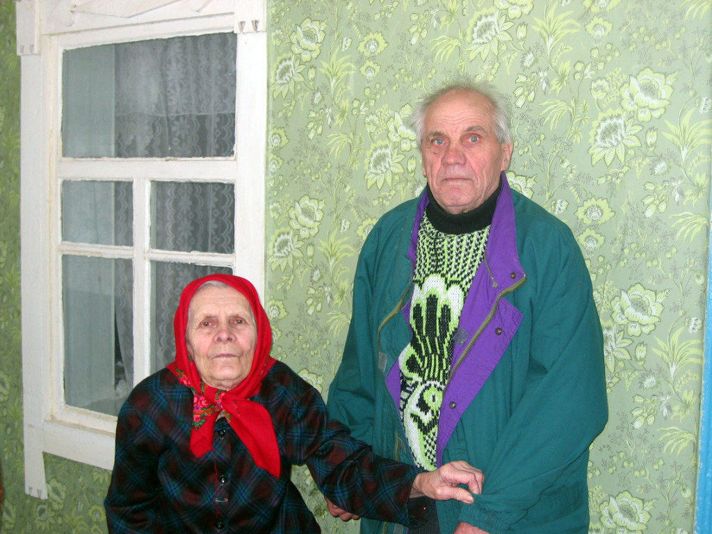 Vier Jahre später. Iwan Dwirko empfängt uns freundlich an der Türe, er muss erst mal 5 Minuten Schnee schaufeln, dass der Fahrer sein Auto parken kann. Dann bittet er uns hinein, stellt uns seiner Frau vor. Hanna kommt uns entgegen, sie lächelt liebenswert und schüttelt uns die Hand. Ich erschrecke ein wenig. Sie läuft vorn übergebeugt und ist unendlich klein. Ich wusste von der Tochter, dass sie krank ist, sich von ihrer Ziegenmilch ernährt, aber so krank hatte ich sie mir nicht vorgestellt.