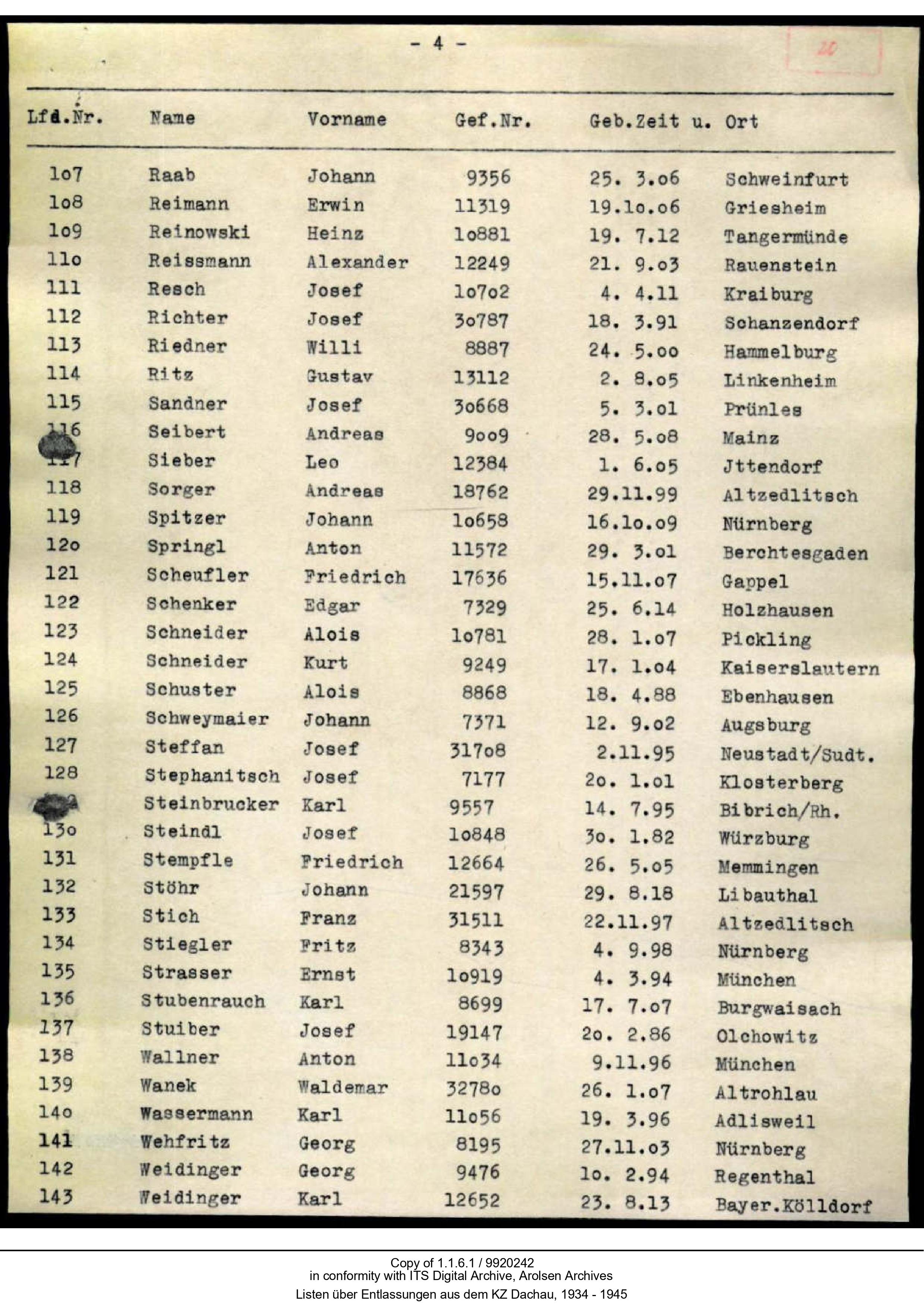 – 1.1.6.2./10296859 Individuelle Unterlagen des KZ Dachau