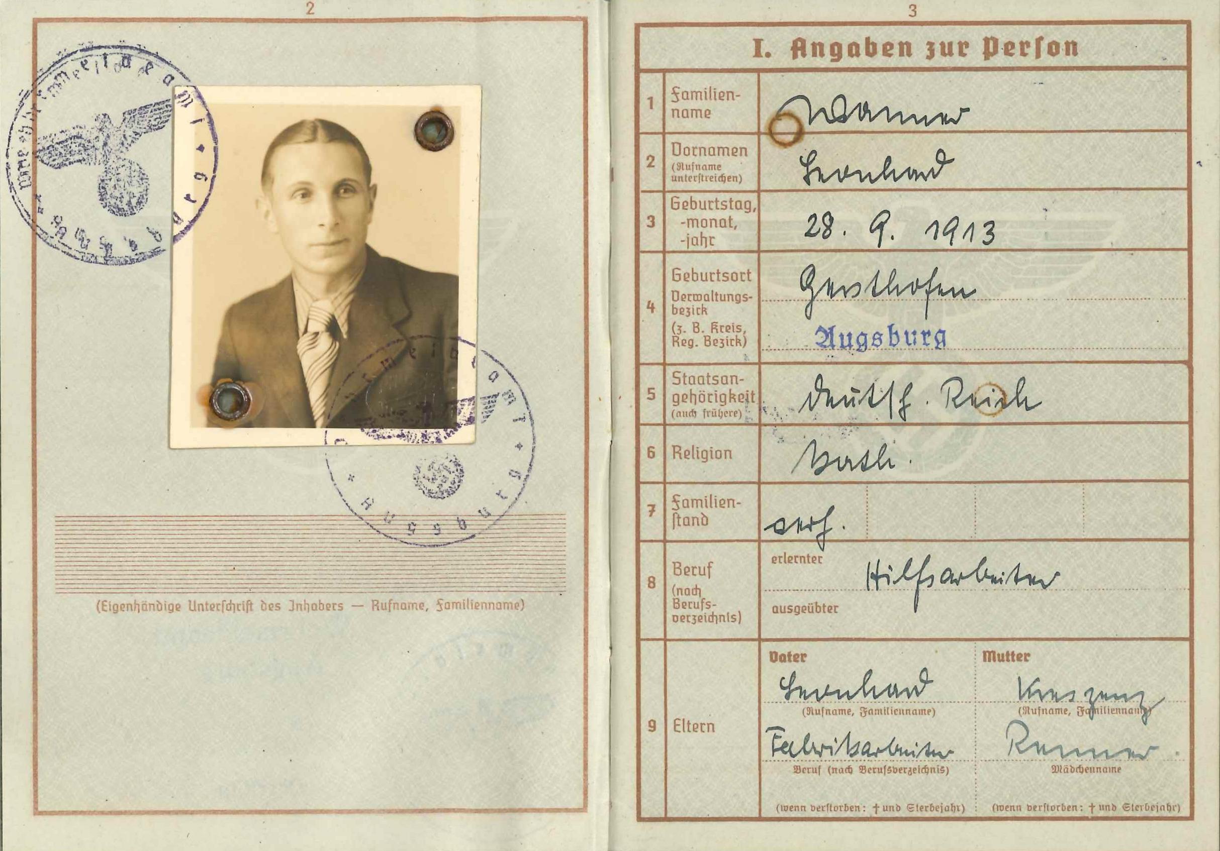Im Alter von 26 Jahren heiratet er in Gersthofen kurz vor Kriegsbeginn die um 4 Jahre jüngere Gersthoferin Pauline Wittmann6 am 21. April 1939.