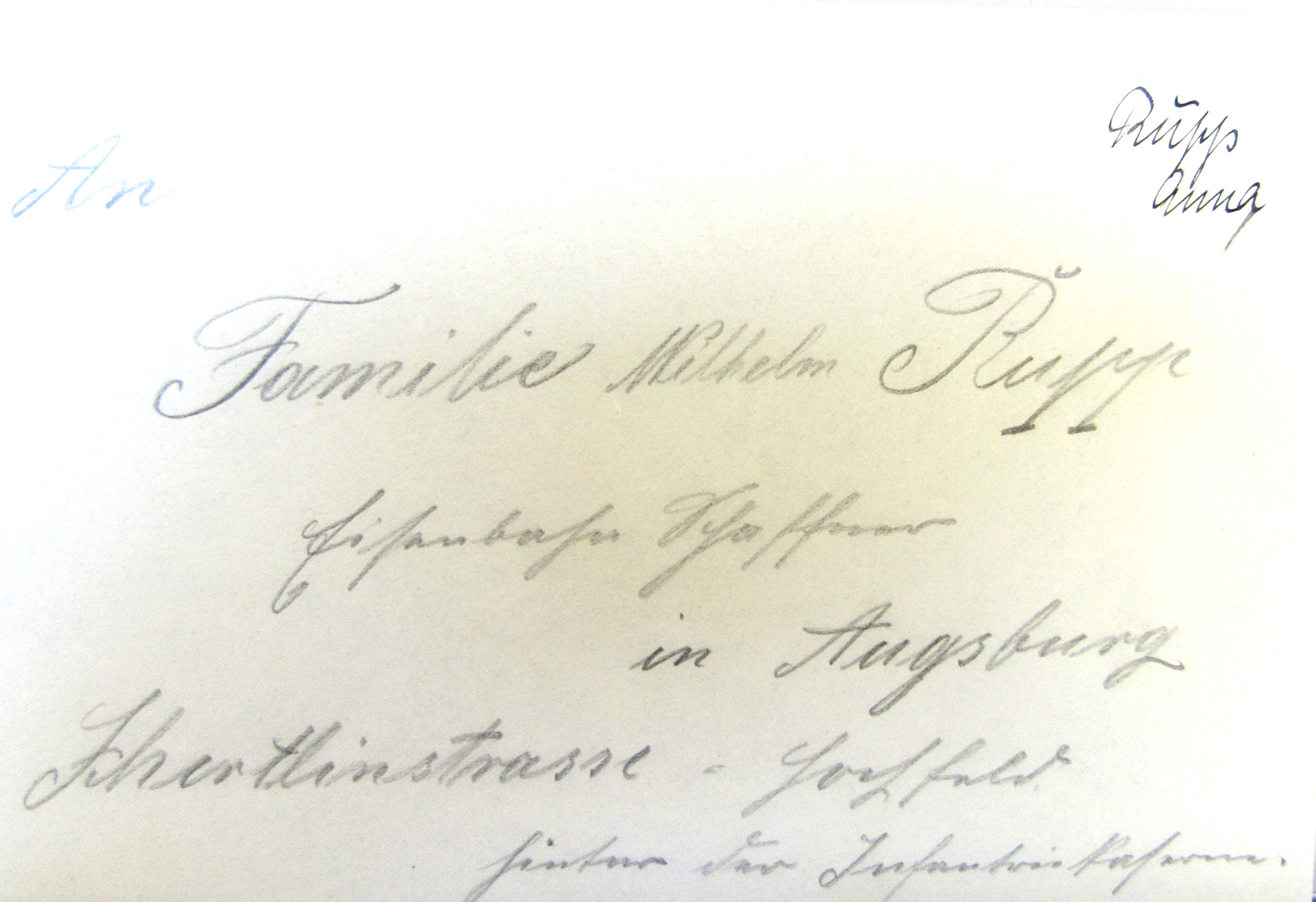 Die Familie zieht im März 1889 nach Burgau.4 Aus welchen Gründen die Familie Rupp nach Augsburg gekommen ist, wissen wir nicht. Ob ihr Vater noch den Beruf als Bäcker ausgeübt hat? Die Familie ist noch vor der Jahrhundertwende zuerst in der Seitzstraße 31, dann in der Helmschmiedstr. 3, schließlich ab 1910 in der Äußeren Uferstr. 29, – alle in Augsburg-Oberhausen – nachweisbar.5