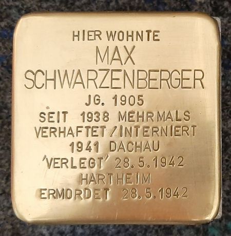 Am 28. Mai 1942 erfolgt ein sogenannter „Invalidentransport“ von 60 Personen von Dachau nach Hartheim/Linz. Zahlreiche Polen befinden sich in demselben, der Augsburger Max Schwarzenberger ist ebenso auf dieser Liste.20 Die Todgeweihten gehören zynischer Weise zu den Buchstaben R-V.21