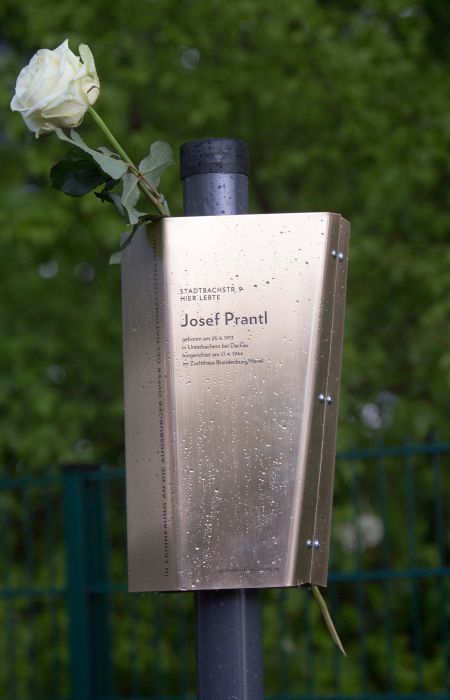 Der Augsburger Josef Prantl ist ein tragisches Beispiel dafür, wie ein offenes Wort das Leben kosten konnte, wenn es dem Falschen zu Ohren kam. Der 30-jährige Gärtner aus dem Stadtbachquartier führte im Herbst 1943 in der Großmarkthalle in der Halderstraße ein Gespräch über die politische Lage. Gegenüber einem Kollegen auf Fronturlaub sprach er aus, was alle klar Denkenden zu diesem Zeitpunkt wussten:“ Der Krieg ist verloren.“ Und er fügte hinzu: „Ihr Soldaten werdet doch belogen." Für diese seine Meinung wurde er von dem Jüngeren denunziert, von der Gestapo festgenommen, wegen sog. Wehrkraftzersetzung angeklagt und nach Berlin vor den Volksgerichtshof geschafft. Am 24. Februar 1944 sprachen die Mörder in den Roben das Todesurteil über den zweifachen Familienvater. Ein Gnadengesuch seiner Frau blieb unbeantwortet. Ein letzter Besuch wurde ihr verweigert.